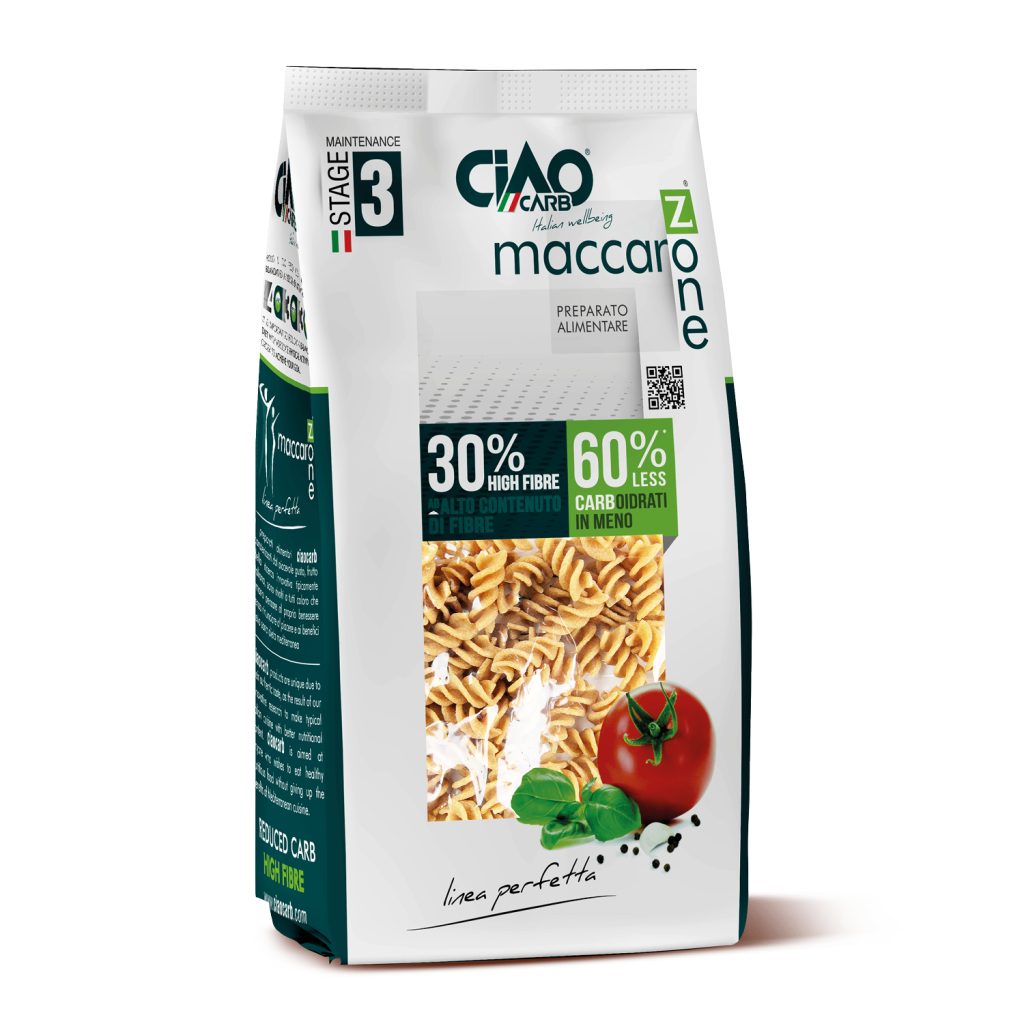 Semola di grano duro, fibra di frumento, amido di frumento modificato, proteine di frumento, fibra di acacia, albume d’uovo in polvere, proteine isolate della soia, stabilizzante: gomma di guar (E412), psyllium.