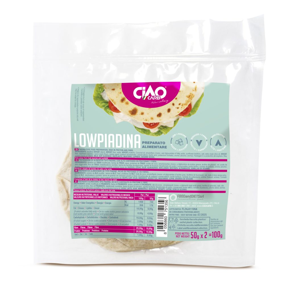 Amido modificato di frumento, farina di frumento, acqua, proteine di frumento, olio di cocco, emulsionanti (mono- e digliceridi degli acidi grassi, lecitina di girasole), sale, olio extra vergine di oliva, fibra di frumento, stabilizzanti (sorbitolo, farina di semi di carrube), agente lievitante (bicarbonato di sodio), conservanti (acido lattico, sorbato di potassio), aroma (alcol, aroma).
