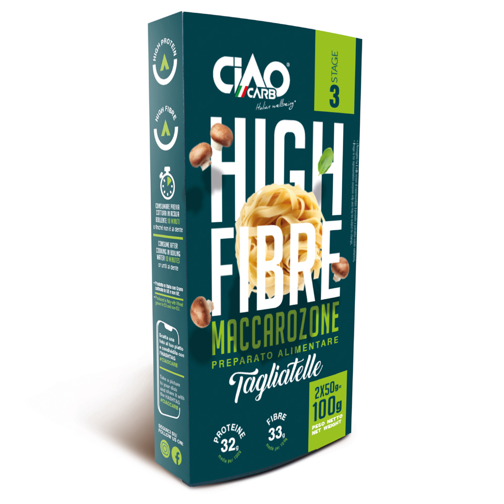Semola di grano duro, amido di frumento modificato, proteine di frumento, fibra di acacia, albume d’uovo in polvere, proteine di pisello, fibra di frumento, lecitina di girasole, psyllium.