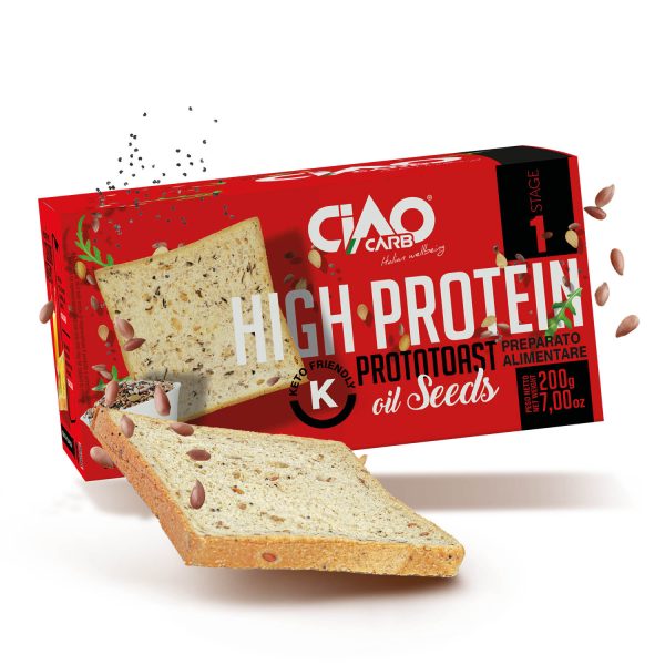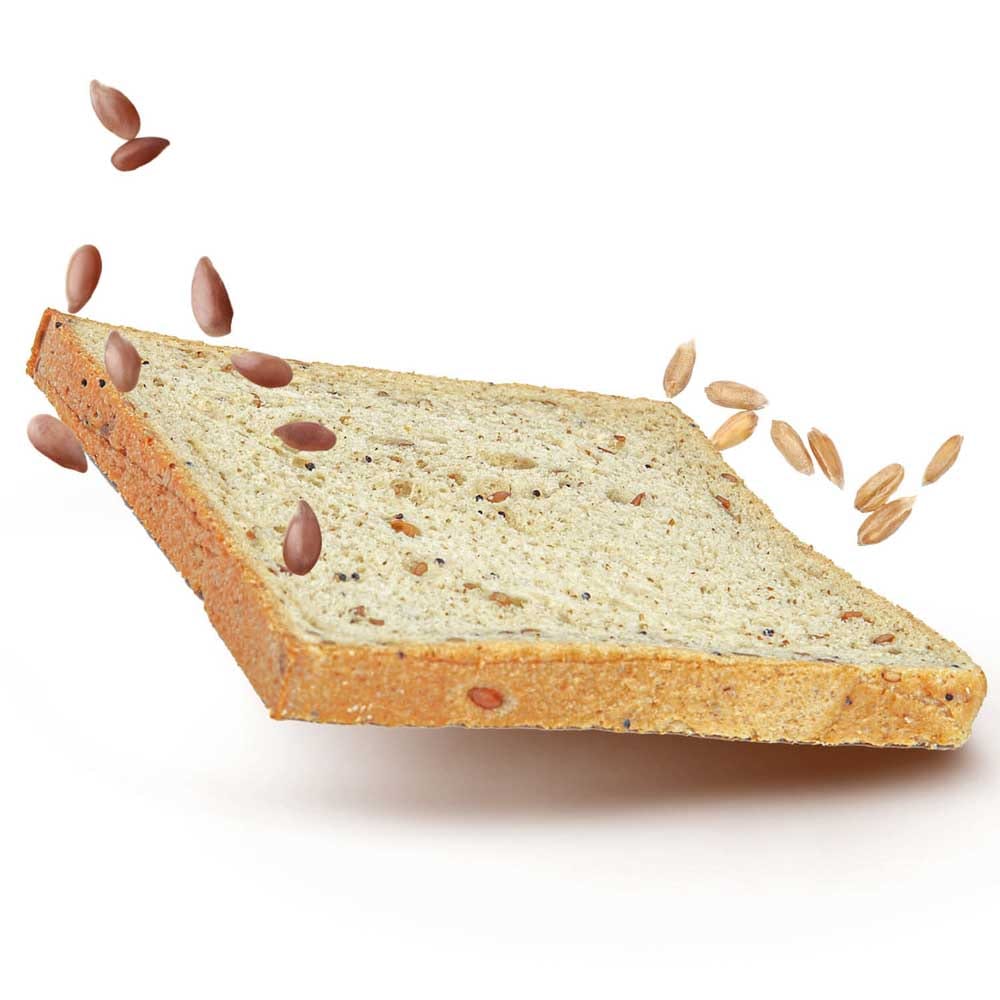 Proteine di frumento, amido di frumento modificato, olio di cocco, proteine di frumento idrolizzate, semi oleosi 6%: semi di lino, semi di sesamo, semi di papavero; emulsionanti: mono- e digliceridi degli acidi grassi, lecitina di girasole; lievito, fibre di frumento, albume d’uovo in polvere, proteine di pisello, sale, olio extra vergine di oliva, pasta acida di frumento.