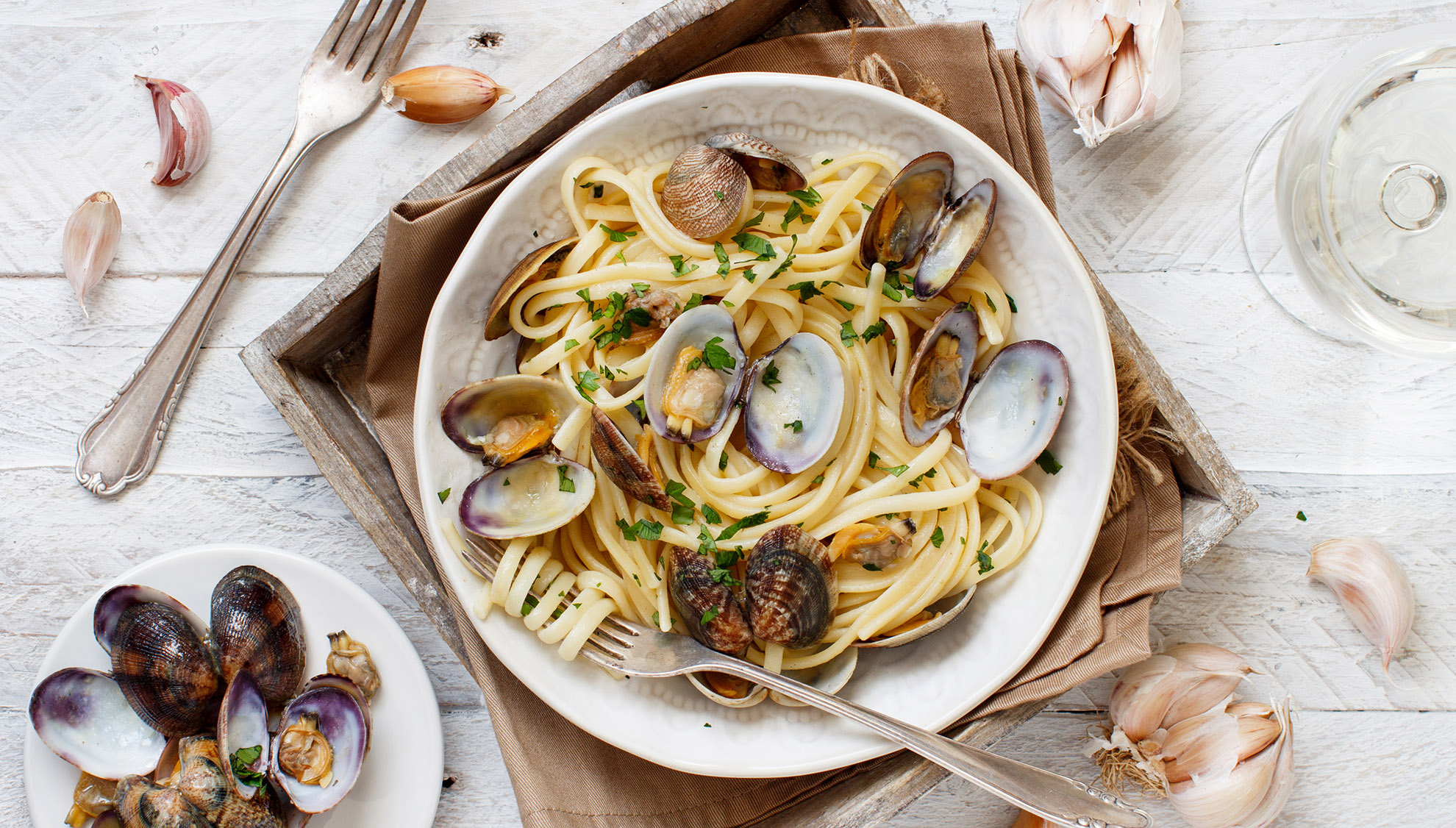 Per preparare gli spaghetti alle vongole, cominciamo dalla pulizia assicurandoci che non ci siano gusci rotti o vuoti, andranno scartati. Ora poniamo le vongole in una ciotola sciacquiamole e aggiungiamo il sale grosso, lasciamole spurgare per due ore e risciacquiamole. Ora in un tegame mettiamo a scaldare un po’ d’olio, aggiungiamo l’aglio e lasciamolo dorare. Mettiamo quindi le vongole nel tegame caldo, chiudiamo con il coperchio e lasciamo cuocere per qualche minuto a fuoco alto finché le vongole non si apriranno. Nel frattempo tritiamo il prezzemolo. Ora cuociamo gli spaghetti in abbondante acqua leggermente salata, per metà del tempo di cottura. Una volta pronti cacciamo gli spaghetti trasferiamoli nel tegame con il condimento e aggiungiamo un mestolo di acqua di cottura, regoliamo di pepe e terminiamo la cottura degli spaghetti, aggiungendo altra acqua al bisogno. Quando saranno pronti uniamo anche il prezzemolo, saltiamo brevemente e voilà. BUON APPETITO!